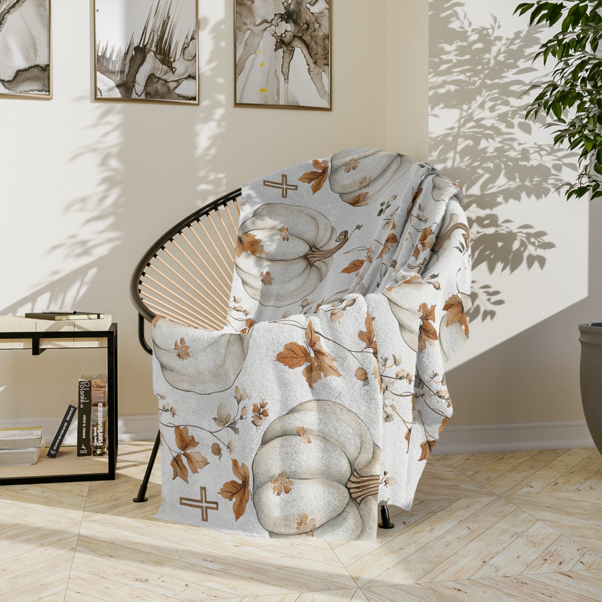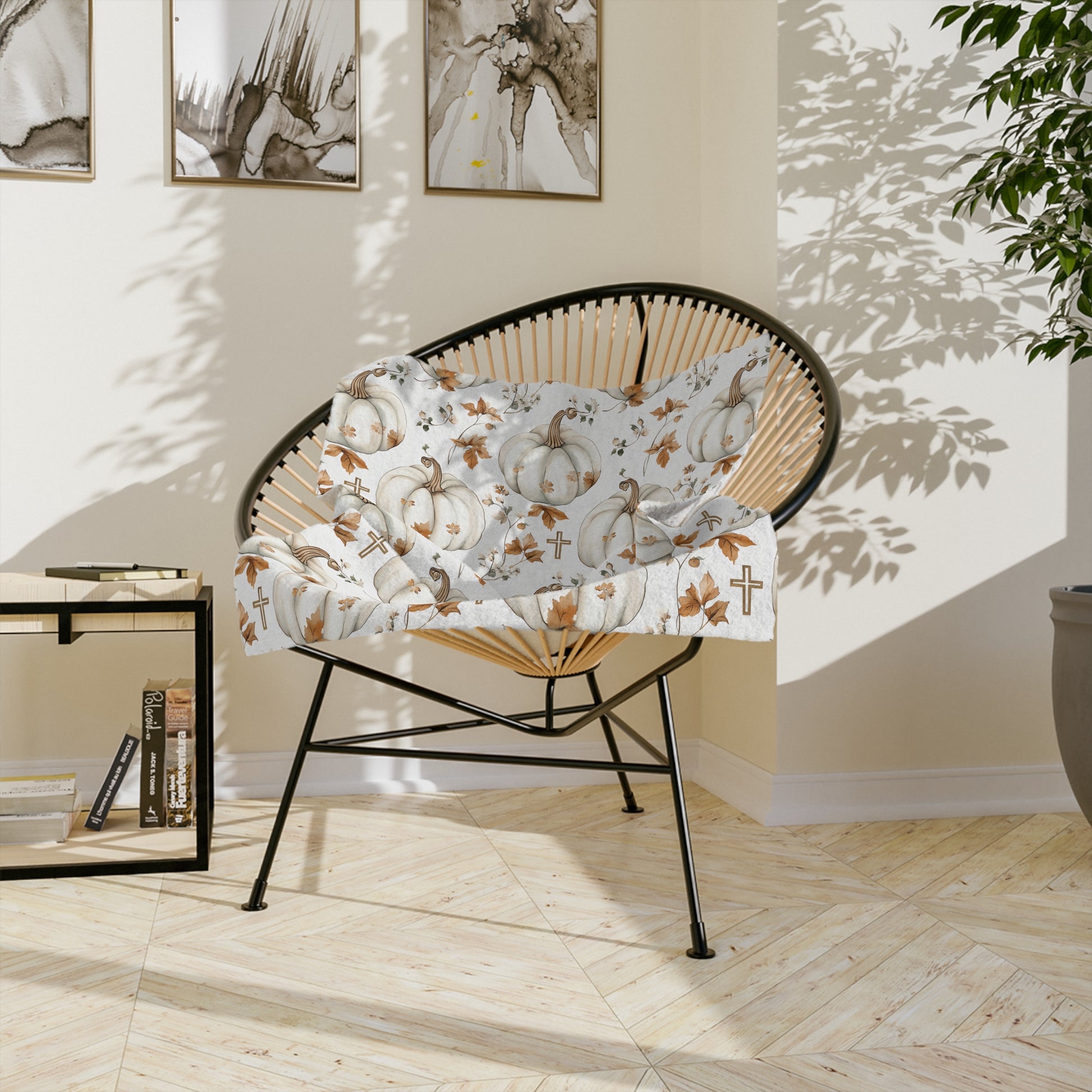 Celebrate the beauty of steady faith and the blessings that come in due season. Our Faithful Harvest Minky Blanket features soft watercolor pumpkins, golden leaves, and gentle cross details — a warm reminder that God is working in every chapter, seen and unseen.
