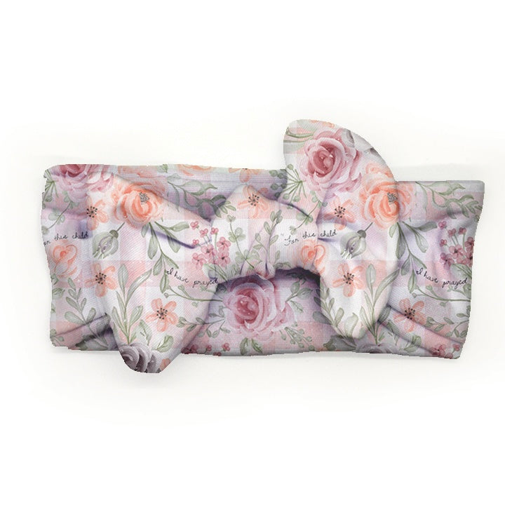 Crafted from soft, stretchy jersey-knit fabric, it’s designed to be gentle on delicate newborn skin while offering a snug, comfortable fit. The vibrant, high-quality print brings the verse to life in a sweet, elegant pattern, while the square bow adds the perfect touch of charm.