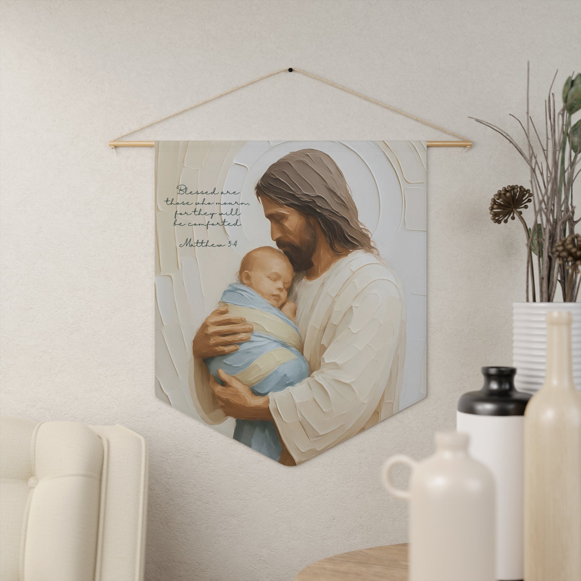 Honor the memory of a little one gone too soon with this touching wall hanging featuring a comforting image of Jesus cradling a baby in Heaven. Designed for those grieving a miscarriage, stillbirth, or infant loss, this artwork offers a spiritual reminder of peace, love, and eternal care. It’s a gentle, faith-filled gift for parents navigating unimaginable loss—one that brings comfort and meaning to their space.