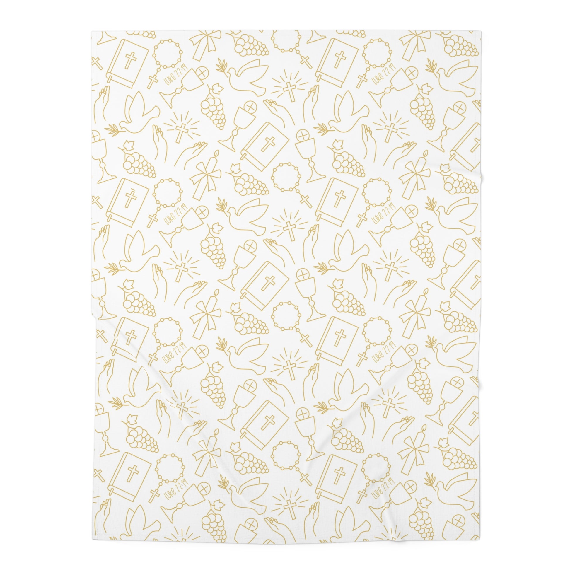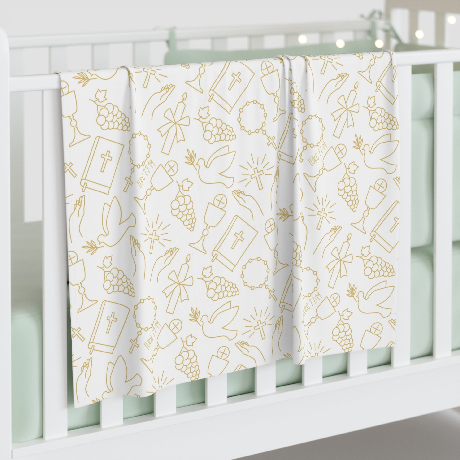 Wrap your little one in comfort with this delightful My First Communion Baby Swaddle Blanket. Made from soft, smooth 100% jersey polyester, this blanket is designed to provide a cozy and secure feeling for your baby. Its vibrant colors, printed with the latest techniques, offer a cheerful addition to any nursery or playroom.